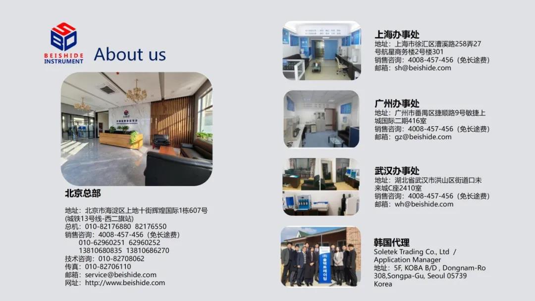 貝士德儀器在上海,廣州,武漢等地設有辦事處和實驗室。